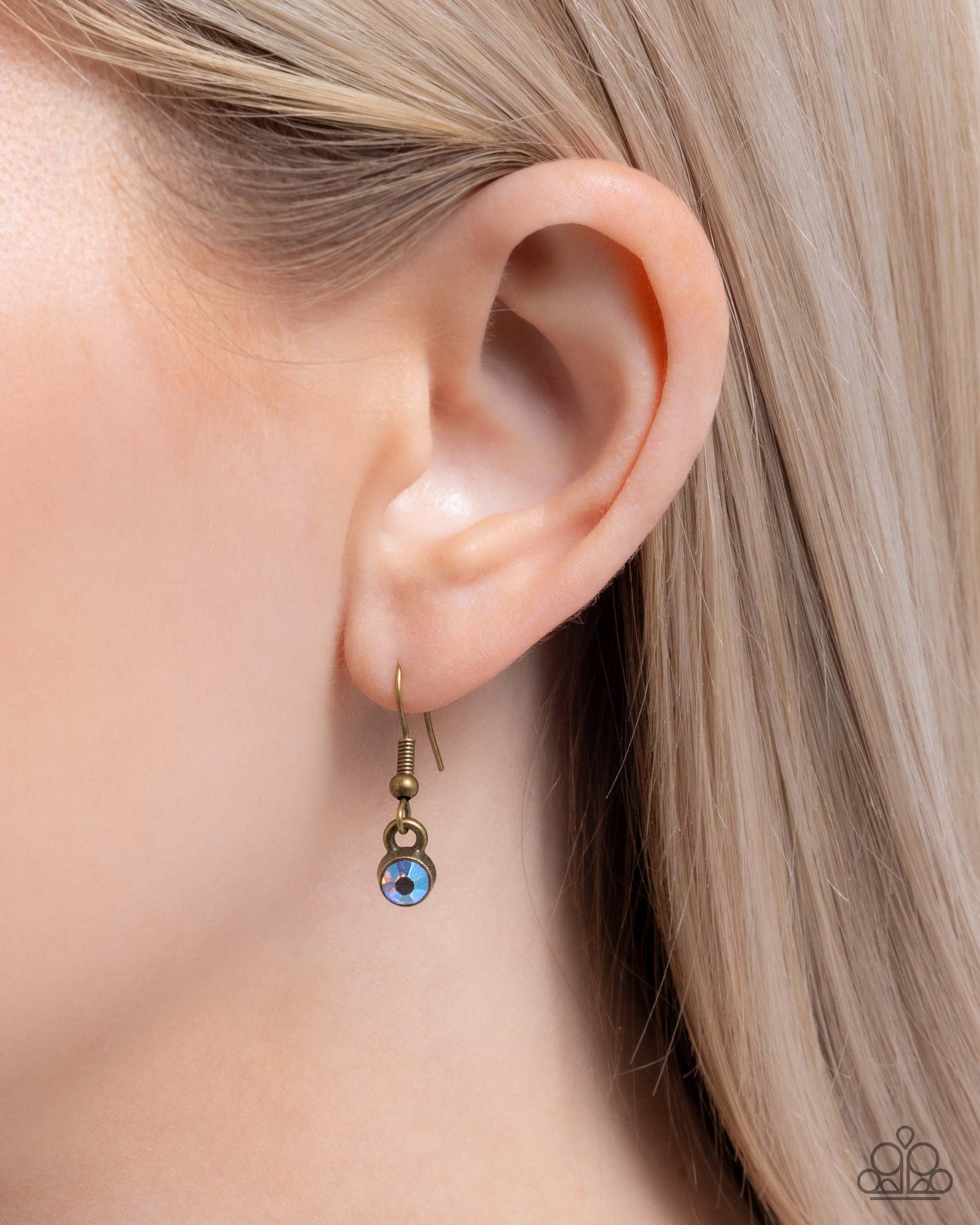 Antique brass frames fan out into scalloped patterns, creating an airy and vintage-inspired design. Each frame cradles a faceted champagne teardrop gem encircled by a ring of glistening iridescent rhinestones, adding an elegant shimmer. The frames are connected to a paperclip brass chain, completing the bold and timeless piece. Features an adjustable clasp closure.